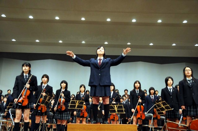 フィナーレは全生徒と関係者たちで校歌を斉唱した |