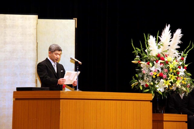 記念式典第一部はおごそかな雰囲気のもと終了した |