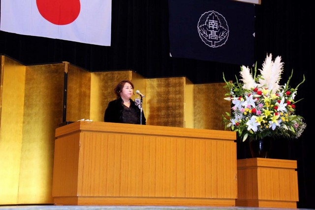 南高PTA会長・渋谷則子さんも壇上から挨拶 |