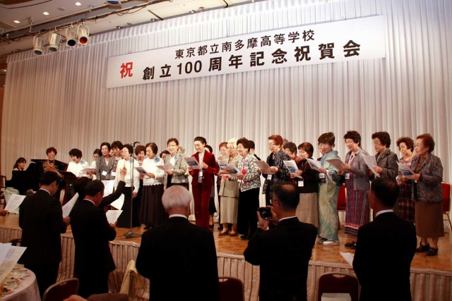 祝賀会のフィナーレは、来場者全員で南高校歌を斉唱 |