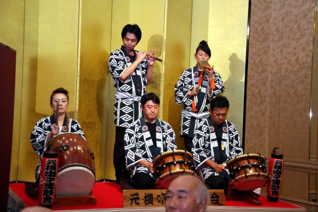 祝賀会をバックで盛り上げた元横囃子連鼓会の面々 |