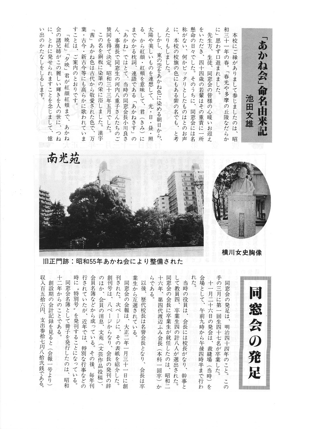 創立50周年記念式典挙行(南高新聞)、池田文雄校長が同窓会を「あかね会」と命名 |