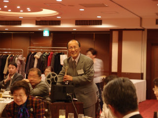 8ミリフィルムをデジタル化してくれた永田さん 8mmフィルム映写の準備をする永田さん 50年前の懐かしい映像に見入る参加者 映写会の後で当時を振り返る常盤会員 最後は恒例により、校歌合唱(かつての乙女たち)