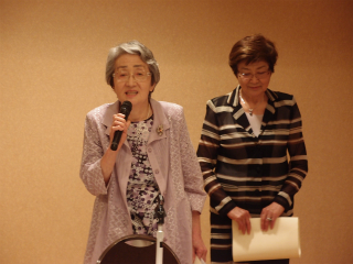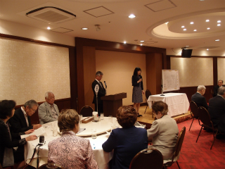 感謝状を片手に挨拶をする野口・田中の前副会長