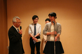 懇親会であいさつをする森永校長
