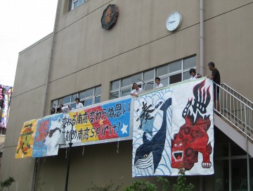 変わる南高変わらぬ思い刻め南高spiritの横断幕が印象的 |