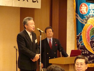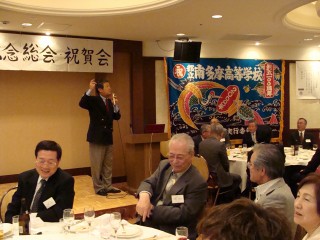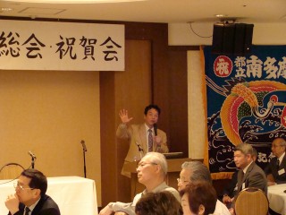 日時:平成24年5月20日(日)午前11時〜午後3時30分 ⇒ (写真集」) 広報紙「みなみたま」2012年版を通して会員の皆様にもご通知しました「あかね会100周年記念総会及び祝賀会」が、晴天に恵まれた5月20日(日)に八王子プラザホテルに於いて、会費制により約120名が参加して盛大に開催されました。 12時からの記念講演会は、講師に前上野動物園園長の小宮輝之氏を招いて、『忘れられない恩師の教え〜動物たちから学んだこと〜』の講演が行われました。小宮さんが初めて入園した多摩動物園で飼育を任されたありふれた安価な動物達(例えばウサギ:ウサギは走るときに耳を立てて走るか?それとも耳を伏せて走るか?のクイズが出されました。答えは総会参加者からお聞きになるかご自身で調べてみてください)との交流から多くを教えられたことや上野動物園でクマの冬眠を成功させ貴重なデータが得られた事等を、数多くのスライドを駆使しながら講演。私たちが知らない動物との楽しい出会いや苦労話をソフトな話しぶりとユーモアを交えての50分は時間があっという間に過ぎてしまいました。ゾウ、キリン等の出産シーンの秘蔵動画には皆さんクギ付け、会場内は感激の渦に包まれました。 午後1時からは会員の皆様が待ちに待った記念祝賀会です。最初に今川健司教諭と南高OGの3人による南多摩百年太鼓の祝いの演奏が会場に響きわたり、大澤晃会員と南高出身の歌手伊達めぐみさんの掛け合いによる軽妙な司会で始まり、石川会長と小林幹彦前名誉会長の挨拶、黒須前会長の乾杯で盛り上がり、今年卒業した前沢君と宇アさんの新会員歓迎式が行われました。 |