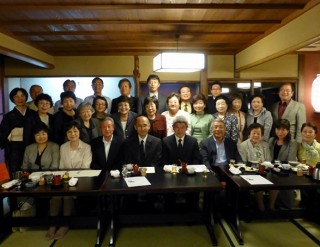 南多摩高等学校及び南多摩中等教育学校の新・前校長歓送迎会が、押尾勲新校長と小林幹彦前校長を囲んで、6月7日夕方から八王子「豆腐屋うかい大和田店」で会費制により開催されました。 当日は石川和昭会長、黒須隆一前会長をはじめ、あかね会常任委員29名が参加しました。校長歓送迎会は南多摩高校100周年時の平成20年(2008年)以来、4年ぶりの開催です。 新たに着任した押尾勲校長は、数多くの都立高校を経験して、前職は池袋の中部学校支援経営支援センター支所で学校経営に関する支援の仕事に携わられていました。 押尾校長からは「これまでの経験をフルに活かして南多摩高校とそれを引き継ぐ南多摩中等教育学校の発展に貢献して行きたい。」との決意が述べられました。 南多摩高校の昭和45年卒業生でもあり、平成20年の南多摩高校100周年記念事業の遂行、63年間に及ぶ定時制の閉課程を見届け、そして平成22年の南多摩中等教育学校開校という3つの大きな出来事の責任者として、4年間母校に携わられた小林幹彦前校長の労をねぎらいました。4月から八王子市別所の八王子市立秋葉台小学校校長として着任され、「南多摩中等学校開校時に入学した中等1年生も可愛かったが、今度の小学校1年生はもっと小さくてそれ以上に可愛い限りです。」との現在の感想も述べられました。