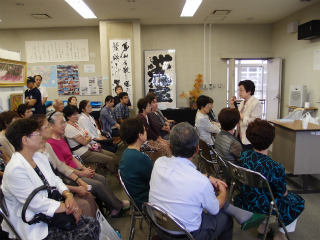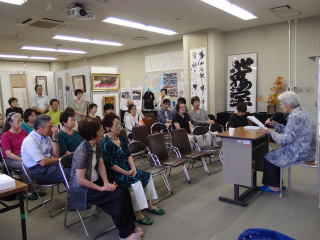 8日(日)はこの夏、八王子空襲から68年を迎えたことで、午後からこの戦争を体験した卒業生たちに出演していただき、朗読や講演会を実施しました。前半は「母校が焼けた日」を出版した昭和25年卒の同期女性4人による叙事詩の朗読、後半は八王子市広報にも登場した教育家・廣瀬智子さん(昭和27年卒)の講演、引き続いて舞踊家の伊藤淳子さん(昭和27年卒)が、それぞれ八王子空襲での貴重な体験について講演をされました。