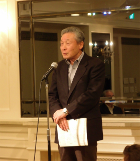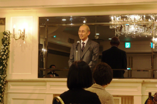最初に石川和昭会長が新年の抱負が述べられ、続いて押尾勲名誉会長(校長)からは、昨年初めて全国大会に出場した「南多摩フィルハーモニー部」、八丈島での実習演奏と東京都主催の太鼓大会に初出場した「太鼓部」の活躍などが報告され、昨年は母校中等・高校の“部活”が大躍進した年でもありました。10月23日に母校で行われたあかね会主催の講演会「先輩に学ぶ」の講師を一人で引き受け、学校や聴講した高2の生徒たちから好評を博した黒須隆一顧問の乾杯の音頭で、今年の新年の宴に入りました。