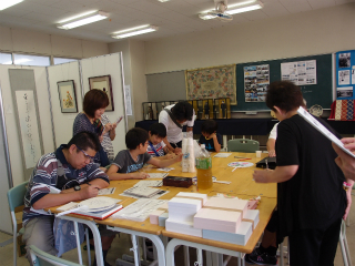 ![]() 正門正面に設置されたゲート ![]() 校舎に掲げられた幟と展示のポスター ![]() 卒業生が執筆したの書籍等 ![]() 卒業生手作りの作品 ![]() 折り紙のポチ袋とクイズコーナー |