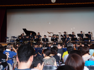 ![]() 体育館で行われた南多摩フィルの演奏 ![]() 体育館で演奏された太鼓部の演奏 |