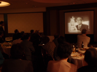 懇親会では昨年母校で発見された8ミリフィルムの上映が行われました。発見された8mmフィルムをデジタル化していただいた永田峻さんがゲストとして出席され、56年前の「昭和33年・南高50周年事業」のを8mm映写機で上映していただきました。新年会出席者の中には、撮影当時まだ可愛い女生徒だった方がいたり、この当時在籍していた先生方の映像を見て、会場内に歓声が上がりました。最後は恒例となった校歌を合唱し、次は3月13日の『南高閉校を惜しみ“南多摩”継承を祝う会』で再会することを合い言葉に、閉会となりました。