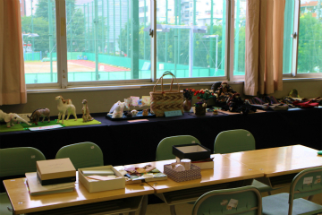 卒業生の作品展示![]() 前身の南多摩高校の歴史を示すポスター ![]() 折り紙のポチ袋のコーナー(手前)と卒業生の手作り作品 ポチ袋の折り方 ![]() 卒業生が執筆したの書籍とて作り作品 ![]() 卒業生作品(写真) ![]() 卒業生作品展示とクイズコーナー 黒板には太鼓部の写真 ![]() 卒業生作品(書画や能面) |