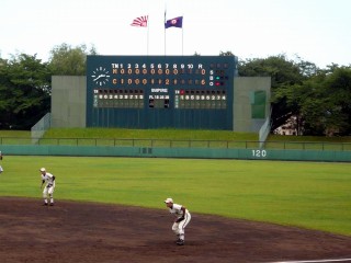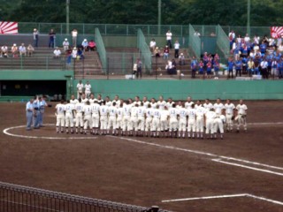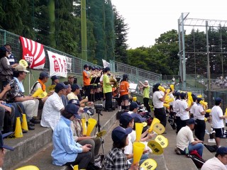 7月12日(月)、上柚木球場で明学東村山高を相手に、上野投手の完投もあり、【9−2】の7回コールドで圧勝、さい先よいスタートを切った南高野球部は、7月15日(木)、天気にも恵まれた立川市営球場で、中大附属高校と3回戦を戦いました。 両校ともブラスバンドによる果敢な応援合戦で盛り上がる中で、南高は1回にヒットとエラー絡みで1点を失いましたが、その後両校とも安打ともランナーを背負いながら失点を与えない攻防が続きました。 南高打線も何度か満塁で攻め立てるも、ここ一本が出ません。 流れが動いたのは南高の主戦・菅原投手が退いた5回裏。中大付属高のしぶとい攻撃で1点を追加、その後回を重ねるごとに着々と点を追加、最後は〔0−6〕で決着、南高野球部の夏は終わりました。 しかし、3年ぶり3回戦まで進出した南高野球部には、吹奏楽部や父兄(母姉)の皆さん、OB・OGたちが熱心に応援する観客席から、多数の拍手喝采が鳴り響き、選手たちが退場するまで鳴りやみませんでした。