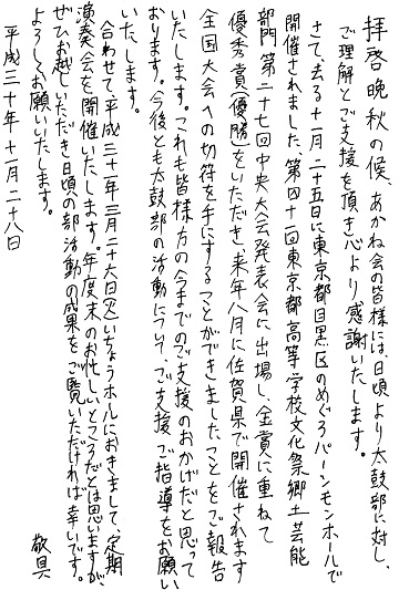 太鼓部からたよりが届きました。