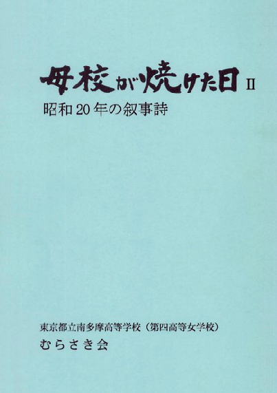 「母校が焼けた日 U」は東京都立南多摩高校(第四高等女学校)むらさき会 発行、編集人 柴田雅子さん 田中万代さんです。なお、前版の「母校が焼けた日 私の昭和20年」は、2001年5月に日本エディタースクール出版部から発行されています。