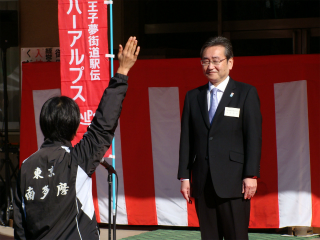平成25年2月10日(日)に南多摩高校を会場に第63回全関東八王子夢街道駅伝競走大会が開催され、南多摩高校、南多摩中等教育学校も参加しました。 当日は好天に恵まれ、絶好の駅伝日和なりました。 開会式、閉会式の会場及びゴールが南多摩高校になっており、早朝から競技参加選手や関係者が多数集まっていました。 関東全域に加え、東日本大震災の被災地福島県いわき市からも中学校2校が招待され、男子は草野中が2位、女子は泉中が優勝しました。 競技のスタート地点は、JR八王子駅北口、ゴール地点が南多摩高校の西側の道路となっており、男子の1部〜3部が午前10:00にスタート、男子中学生と女子の部の4部〜7部が10:10にスタートしました。 コースは、高校生以上の男子(1〜3部)が4区20.7km、高校生以上の女子(5,6部)が4区14.8km、中学生の部(4,7部)が5区14.9kmで、甲州街道を西に向かい、京王線狭間駅、めじろ台を周回して折り返します。 各部門別の参加チーム数は以下のとおりで、今回が過去最高となりました。 南多摩チームは高校男子、高校女子、市内中学男子、市内中学女子に参加し、中学の部で男女ともに入賞しました。 【部門】 1部 : 一般男子の部 207チーム 2部 : 大学男子の部 87チーム 3部 : 高校男子の部 68チーム 4部 : 市内中学男子の部 26チーム(南多摩中等教育学校4位入賞) 5部 : 一般女子の部 61チーム 6部 : 高校女子の部 23チーム 7部 : 市内中学女子の部 17チーム(南多摩中等教育学校5位入賞) (写真集) |