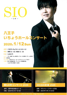 2020年1月12日(日)八王子いちょうホールに於いて13時30分より、昭和62年卒 小塩晶人さんことシンガーソングライター「SIO」のライブコンサートが開催される。